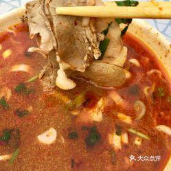 将面条煮熟后,放入羊汤中,再加入羊肉、羊杂等食材,即可食用。